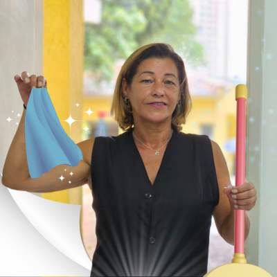 SueliSou a Sueli ou Su... Trabalho no Colégio há 5 anos e sou responsável pela limpeza e organização. O que mais gosto aqui é conviver com as crianças porque recebo muito carinho. A escola limpa faz bem para todos e é por isso que gosto do que faço. Gosto da equipe em que trabalho porque todos são tratados igualmente, com respeito.