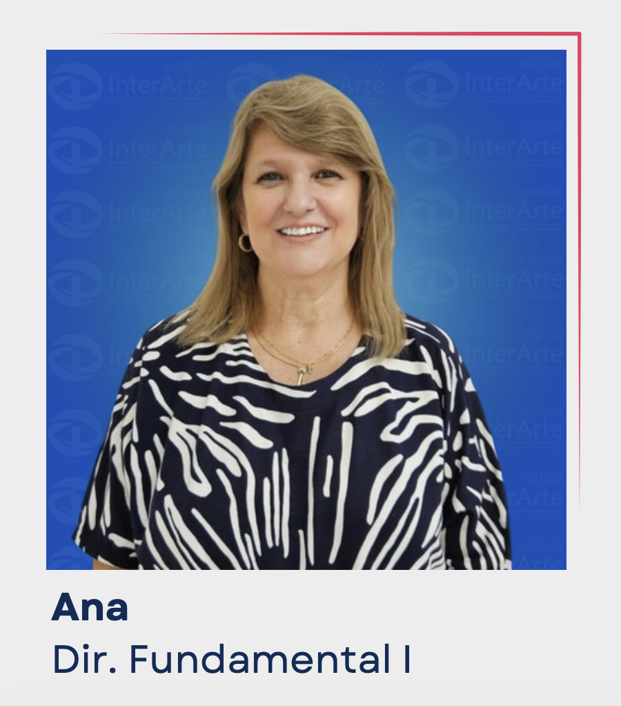 AnaMeu nome é Ana Lúcia, mas todos me chamam de Ana. Acho que já nasci com interesse pela Educação! A vida inteira me dediquei aos estudos voltados para a formação humana, sou formada em Psicologia, Pedagogia e pós-graduada em Psicopedagogia, além dos inúmeros cursos de especializações em Orientação Familiar e Gestão Escolar. Tive a oportunidade de fazer curso na Itália na cidade de Reggio Emília. Há 26 anos me dedico ao Colégio InterArte, fruto de um sonho de uma educação voltada para um olhar individualizado do aluno, do respeito e amor, da aprendizagem significativa baseada em experiências e trocas. Atualmente estou na direção do Ensino Fundamental I, me sentindo realizada profissionalmente