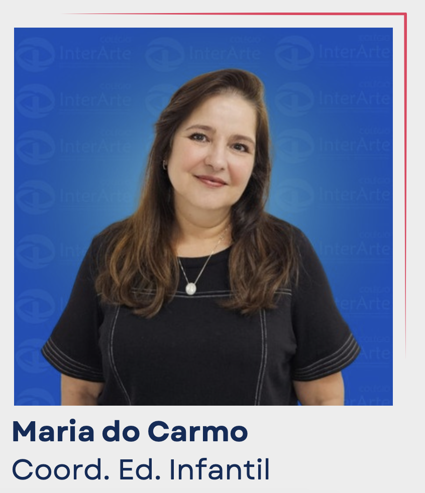 Olá, sou a Maria do Carmo formada em letras e pedagogia. Atuo na área de educação infantil há 37 anos e estou no colégio Interarte desde o início das suas atividades.